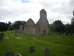 The early church is associated with St Finnian of Clonard and dates from the 11th century. Parts may date to the 6th century as they are similar to remains found at Glendalough. The church was originally a simple oblong (now the nave) and a chancel and belfry were later added.[5] Originally known as Clonkeen (Irish: Cluinchenn), it is now known as Kill of the Grange, meaning "church of the monastic grange."