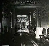 The house, in addition to its other defects, apparently did not sit happily in the landscape as it had many gables and many oriels. The interior was panelled and hung with Spanish leather. It was considered one of the finest mansions in Ireland. It was burnt out twice - once in 1879, just after its completion, and again, and finally, in August 1913 and never rebuilt. Instead, The 5th Earl of Kenmare decided to convert the nearby stable block of the old Kenmare House for family use, also naming it "Kenmare House".