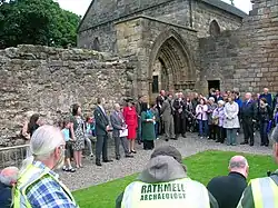 In the 16th century the abbey had been gradually secularised and protestantised; the last abbot, Archbishop Gavin Hamilton of Roplock, died at Restalrig, outside Edinburgh on 'Black Saturday, 15 June 1571, following a skirmish between the parties supporting the Queen and the opposing Protestant faction under the Earl of Morton.[2] Although he supported the Reformation, he was also a supporter of Mary Queen of Scots.[31]