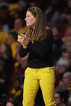 Kimberly Ann Barnes Arico (born August 9, 1970)[2] is an American basketball coach and the current head coach of the Michigan Wolverines women's basketball team. She is the all-time winningest Michigan basketball coach.[3] Previously, she was head coach of the St. John's Red Storm women's basketball team. She was inducted into the Suffolk Sports Hall of Fame in 2020.