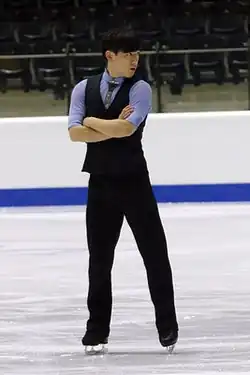 Kim was assigned to the 2014 NHK Trophy.[9] At the 2014 Ondrej Nepela Trophy, Kim became the first Korean male skater to break the 70-point mark in the short program with the score of 71.44. He placed in 9th place at both his Grand Prix assignments. At the 2015 World Junior Championships, he placed fourth in the short programs, 11th in the free skate, and ninth overall, thus securing two spots at the 2016 Junior Worlds.