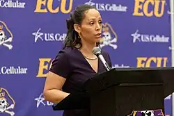 Kim McNeill (born June 20, 1978; née Hairston) is an American basketball coach from Bassett, Virginia. She is the current head coach for the East Carolina Pirates women's basketball team.[1] Prior to becoming the head coach at East Carolina in 2019, she spent three seasons as the head women's basketball coach for the University of Hartford.[2][3] Before taking over at Hartford she served as assistant and associate head coach at Virginia.[4]