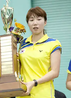 Kim Min-jung (born 29 July 1986) is a badminton player representing South Korea.[1] Her name is sometimes spelled Kim Min-jeong. As a badminton player, Kim has focused on doubles with Ha Jung-eun; together they competed at the 2008 Beijing Olympics. In the past she has been paired with Hwang Ji-man and Yoo Yeon-seong in mixed doubles.