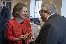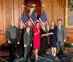 Schrier was sworn into office on January 3, 2019, as the U.S. representative for Washington's 8th congressional district.[26] During the 116th Congress, she served on the Committee on Education and Labor and Committee on Agriculture.[26] During Donald Trump's administration, Schrier voted in line with the president's stated position 6.6% of the time.[27] As of June 2023, Schrier had voted in line with Joe Biden's stated position 100% of the time.[28]
