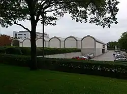 ![]() The south wing of the museum showing a portico and five vaulted galleries. The tree-lined entry courtyard is at the far left. | |