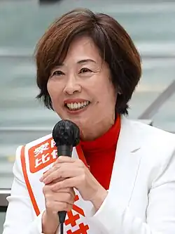 In the 1995 House of Councillors election, she ran as a Communist Party candidate for the Kanagawa at-large district, but was unsuccessful coming in 6th place.[6] In the 1998 House of Councillors election, she again ran for the Kanagawa district and won, in part thanks to a boom of support for the Communist Party and the fact that the conservative vote had been split among a number of different candidates. She is so far the on member of the Communist Party to have been elected to the Kanagawa district.