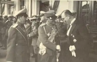 The government made changes in foreign policy, in which it advocated continuity with the previous cabinets, strengthening good relations with neighbouring countries, which had concluded the Balkan Pact at the beginning of the year. The goal of the new government was to completely "renovate" the Bulgarian parliamentary system and change the country's foreign policy. It released the following declaration on foreign policy: "Reestablishment of our relations with Soviet Russia; peace and good relations with all the Great Powers and especially with our neighbors." The government's readiness to disband the Internal Macedonian Revolutionary Organization (IMRO) was demonstrated by its proclamation of the "reéstablishment of the public authority over the entire extent of the territory." In fact, it moved right away to restructure the local administration into seven departments, each headed by a governor with extensive powers. Naturally, the Petrich district—which the Macedonian revolutionaries had previously controlled—was one of them.[43] With Yugoslavia a trade treaty was made and at the end of September, Alexander I made a visit to Sofia in which he was welcomed by thousands of people. Kimon intensified negotiations with the Soviet Union initiated by the previous cabinet and in July 1934, the first diplomatic relations were made between the two countries.[44][45] In the autumn of 1934, a pro-monarchist wing led by Pencho Zlatev and a pro-republican wing led by Damyan Velchev took shape in the ruling circles of the Zveno and Military Union. Kimon Georgiev began measures to remove Zlatev from his War Office, but its unsuccessful, due to the leadership of the Military Union resisting. Damyan Velchev remained in isolation after the Union's Congress in November with the organization rejecting much of the cabinet's policies.[46] On 22 January 1935, Boris III executed a counter-coup[47][48] to strength his role in Bulgarian politics, in which Georgiev resigned and Pencho Zlatev took control as a pro-monarchist. Kimon Georgiev was given a chance to be Minister of Justice, but declined.[49]