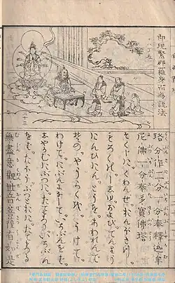 The most famous kinnari in Thailand is the figure known as Manora (Thai: มโนรา, derived from Manohara),[15] a heroine in one of the stories collected in "Pannas Jataka" a Pali tome written by a Chiang Mai Buddhist monk and sage around AD 1450–1470.[16] This is supposed to be a collection of 50 stories of the past lives of the Buddha, known to Buddhists as the Jataka. The specific tale about Manora the kinnaree was called Sudhana Jataka, after Prince Sudhana, the bodhisattva who was also the hero of the story and the husband of Manora.