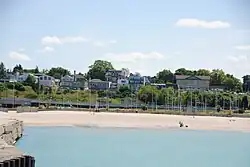 Kincardine Lighthouse and museum are located on Harbour Street, as well as a building constructed in 1877 which has served as a bank, a barristers and solicitors office, a newspaper office, a doctor's office, a private residence, and a restaurant. The building is architecturally significant for its intricate brick work design around the windows and parapet.[27] Paddy Walker House, the oldest building in Kincardine,[28] is now a museum. Beaches in Kincardine include Tiny Tot beach, Station Beach (Reunion Park), and Boiler Beach. There are two piers attached to the marina, with the South Pier used for "cliff-jump" style swimming.[18]