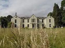 Kindrogan House is an early 19th-century building, incorporating earlier fabric (possibly mid 18th century), with later additions and alterations. It is a substantial 2-storey structure, with crowstepped gables and a three sided courtyard to the rear. It has an ornate doorpiece, is harled with painted stone margins, and has walls of random rubble with large squared rubble granite quoins.[1]