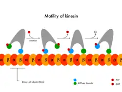 - ^ Asbury CL (February 2005). "Kinesin: world's tiniest biped". Current Opinion in Cell Biology. 17 (1): 89–97. doi:10.1016/j.ceb.2004.12.002. PMID 15661524.