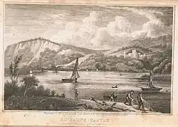 In reward for his services at the capture of Perth in 1313, Thomas de Longueville was granted land east of Perth by Robert the Bruce. Thomas married the heiress of Charteris of Kinfauns and changed his name to Charteris. He built a castle named Kinfauns Castle on the lands granted. His family had a long-running feud with the Ruthvens of Perth and in 1552 John Charteris was murdered by the Ruthvens on the High Street (Royal Mile) in Edinburgh. The property passed from the Charteris family to the Carnegies and from there to the Blairs.[3] Charteris' sword is believed to still be within the castle.[4]