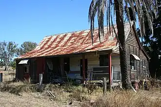 The former King's Boarding House, a gabled building of horizontal slab construction with a detached kitchen was built in 1889 by selector John King, on the Maidenwell-Cooyar Rd, Maidenwell.[1]