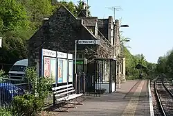 Kings Nympton railway station, also spelt King's Nympton, is a request stop on the Tarka Line in North Devon, serving the civil parishes of Chulmleigh, Burrington and King's Nympton. The station is located at Fortescue Cross, a road junction on the A377, around 2+1⁄2 miles (4 km) from its namesake village. It is 26 miles 21 chains (42.3 km) from Exeter Central at milepost 197.75 from London Waterloo.[1] The station and all trains are operated by Great Western Railway (GWR).