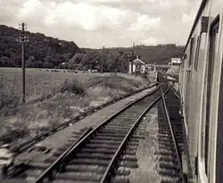 In 1965 there were 9 down and 10 up trains calling at Kings Nympton on weekdays[8] but the Western Region downgraded lines and cut services along the former Southern lines.[9] The goods yard at Kings Nympton was closed to public traffic on 4 December 1967 although a siding was retained until 1981. The signal box closed on 26 July 1970 and since then all trains then have used the former up platform.[2] By 1980 there were just 4 down trains each day and 5 weekday and 3 Sunday up services.[11]
