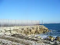 Once quarrying in the area was reduced, and quarries moved inland from the cliffs, the pier fell out of use, and any cranes were removed.[2] The remnants of the pier ended up being used as the boundary of the naval base. Portland Harbour was sold by the navy in 1996 as a commercial port run by Portland Port Ltd,[6] and the boundary fencing on King's Pier continues to stand today.[7][8]