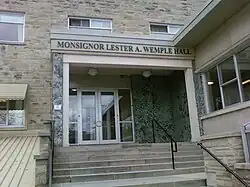 The college's first classes were held in Monsignor Wemple Building. The Monsignor Wemple Building remained the sole educational facility until 1982, when the school began using lecture theatres in Dante Lenardon Hall.[22] The buildings at King's University College vary in age from Wemple Hall which was completed in 1954, to the Darryl J. King Student Life Centre, completed in 2014.[23][24]
