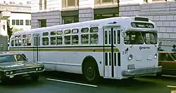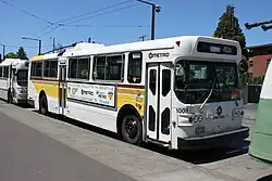 Upon taking over transit operations on January 1, 1973, Metro used buses acquired from predecessor agencies Seattle Transit System and the Metropolitan Transit Corporation, still painted in their original colors.[4] Metro acquired the 91-bus fleet of the Metropolitan Transit Company in December 1972 at a cost of $2.75 million.[5] The first fleet of new 40-foot (12 m) buses ordered by Metro arrived in June 1976, consisting of 145 diesel coaches manufactured by AM General.[6] In 1978, Metro became the first large transit agency in North America to introduce articulated buses to its fleet, which required some bus stops to be rebuilt to accommodate 60-foot (18 m) coaches.[7][8][9] The fleet of 151 buses were manufactured by German maker MAN as part of a bulk order with other large U.S. transit agencies.[10]