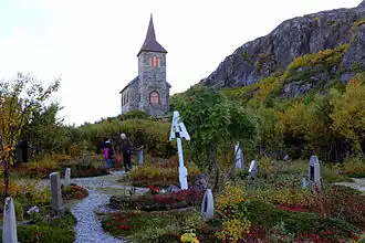 King Oscar II Chapel (Norwegian: Kong Oscar IIs kapell) is a parish church of the Church of Norway in Sør-Varanger Municipality in Finnmark county, Norway. It is located near the village of Grense Jakobselv, about 500 metres (1,600 ft) from the border with Russia. It is one of the churches for the Sør-Varanger parish which is part of the Varanger prosti (deanery) in the Diocese of Nord-Hålogaland. The stone church was built in a long church style in 1869 by the architect Jacob Wilhelm Nordan (1824–1892). The church seats about 72 people.[1][2][3]