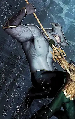 He joined Manchester Black's Legion of Villains in the "Ending Battle".[9] He later turned up in Metropolis and attacked Jimmy Olsen. Superman quickly took him down, knocking most of his teeth out (though they grew back). King Shark also made an appearance during the Joker's Last Laugh riot with Orca.