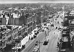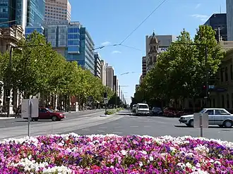 Until the 1960s, trams used King William Street as a major backbone of the network, with a grand union junction at North Terrace and only one pair of tracks missing between Grenfell and Currie Streets.[7] When most of the tram lines were dismantled in the 1950s, only the Glenelg tram line remained, and it used King William Street between South Terrace and its terminus at Victoria Square.[8]