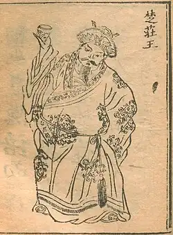 King Zhuang of Chu (Chinese: 楚莊王; pinyin: Chǔ Zhuāng Wáng), personal name Xiong Lü, was a monarch of the Chu state. He was one of the "Five Hegemons" who attempted to wrest control of China during the Spring and Autumn period.[1]