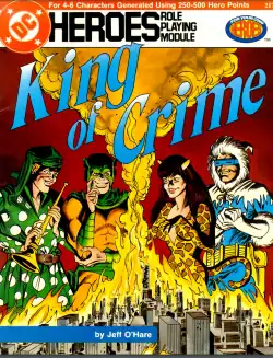 Mayfair Games first published the superhero role-playing game DC Heroes in 1985. The introductory adventure King of Crime was published the following year, a 32-page softcover book written by Jeff O'Hare, with cover art by Ed Hannigan, Carmine Infantino, and Bob Smith, interior art by Rob Davis, and cartography by James Clouse.[2]