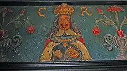 Though it is not clear whether this is Charles I or Charles II, or an amalgam of both, or perhaps just a generic monarch. since it is not particularly realistic.