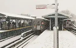 The Kings Highway station is an express station on the BMT Brighton Line of the New York City Subway. It is located at Kings Highway between East 15th and East 16th Streets on the border of Midwood and Homecrest neighborhoods of Brooklyn.[3][4] The station is served by the Q train at all times and by the B train on weekdays only.