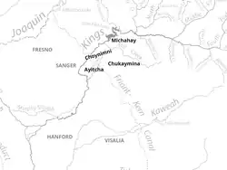 There were four dialects of Kings River, Chukaymina, Michahay, Ayitcha (a.k.a. Kocheyali), and Choynimni.