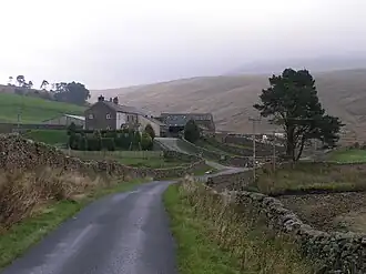 The single minor public road which serves the valley is an old packhorse route that connected Ingleton with Deepdale, then Dentdale, and which also forms the NCR 68 and the Yorkshire Dales Cycle Way.[18][19][20] This road was a rough track until just after the Second World War, when it was re-laid with tarmac, and reaches a height of 1,552 feet (473 m).[21] On the west high ground of the valley is a track known as Turbary Road (turbary being an ancient right to cut peat or turf for fuel). The route is so named as it was where the peat-cutters would transport their peat down the valley.[4] There are several nationally important caves within the valley (such as Rowten Pot and Yordas Cave)[22] and the resurgence of Keld Head. Several other caves exist under the valley; Kail Pot, Swinsto Cave, King Pot, Jingling Pot, Valley Entrance, and Bull Pot.[23][24]