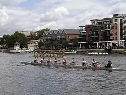 The regatta takes place in July and forms part of the Kingston River Festival.[2] It attracts top crews from schools, clubs and universities from around the UK. Racing takes place on the 1000 metre downstream course that stretches alongside Hampton Court Palace Park and ends just upstream of Kingston Bridge. International and Olympic rowers who have won at Kingston Regatta include Jack Beresford, Tim Crooks, Kieran West and James Cracknell.[3]