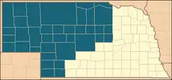The Kinkaid Act of 1904 (ch. 1801, 33 Stat. 547, Apr. 28, 1904, 43 U.S.C. § 224) is a U.S. statute that amended the 1862 Homestead Act so that one section (1 mi2, 2.6 km2, 640 acres) of public domain land could be acquired free of charge, apart from a modest filing fee. It applied specifically to 37 counties in northwest Nebraska, in the general area of the Nebraska Sandhills.[1] The act was introduced by Moses Kinkaid, Nebraska's 6th congressional district representative, was signed into law by President Theodore Roosevelt on April 28, 1904 and went into effect on June 28 of that year.[2]