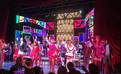 The musical's economic clout empowers a shift in the American cultural climate, engendering acceptance of cross-dressing and transgender individuals.[71] For example, on November 28, 2013, members of the cast performed the finale of the show in the nationally televised Macy's Thanksgiving Day Parade. Many viewers commented that, in their opinion, the performance was inappropriate for a family program.[72][73] The performance of August 26, 2015 marked the 1000th Broadway performance for the production.[74] The Broadway production closed on April 7, 2019 after 34 previews and 2,507 performances.[75]