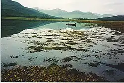 ![]() The head of the sea loch at Kinlocheil. Grassy, shallows at the loch's head, looking west to Glenfinnan. | |