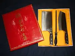 The Kinmen knife (Chinese: 金門菜刀; pinyin: Jīnmén Càidāo) is a Chinese-style chef knife exclusively made in Kinmen County in Republic of China. The knives were once made from the remains of artillery shells fired by the United States and Allied forces in World War II, when the island was occupied by the Empire of Japan, and by mainland China between 1958 and 1978.