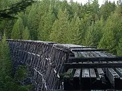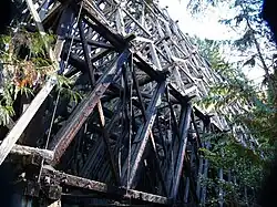 The rail carried both passenger and freight traffic, including primarily timber and other forest products.[3] The last train to cross the Kinsol was in 1979, and the trestle fell into disrepair afterwards.[6]
