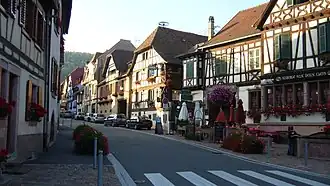 The village is surrounded by Sélestat on the east side, Orschwiller to the south and Lièpvre to the west along with La Vancelle and Châtenois to the north. The 13th century Château de Kintzheim overlooks the settlement and marks the edge of the game rich forests of the Vosges Mountains. Wines produced from the vineyards on the Hahnenberg and Praeletenberg hills enjoy the 'grand cru Praletenbourg' designation: of traditional Alsatian style, these wines can be checked out at the local cooperative wine cellars of Orschwiller-Kintzheim.