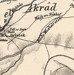 1870s map 1940s map modern map 1940s with modern overlay mapA series of historical maps of the area around Kirad al-Baqqara (click the buttons) | |