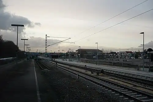 Kirchheim (Teck) station (1864–1899: Kirchheim u Teck) is the most important station of the Baden-Württemberg town Kirchheim unter Teck. Today's train station is at kilometer 6.465 of the Teck Railway between Wendlingen (Neckar) and Oberlenningen. It is served by the Stuttgart S-Bahn S1 line and the regional train line R81.