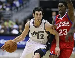 As a high school senior, Hinrich was named the 1999 Co-Iowa Mr. Basketball, along with future college teammate and roommate Nick Collison.[2] Hinrich originally committed to play basketball at Iowa State but when the coach at the time, Tim Floyd, took the head coaching position for the NBA's Chicago Bulls, Hinrich changed his mind and decided to attend the University of Kansas.[3] Hinrich helped Kansas to consecutive Final Fours in 2002 and 2003, his junior and senior seasons. He was drafted by the Chicago Bulls with the seventh pick in the 2003 NBA Draft, where he earned the nickname "Captain Kirk".[4] Hinrich was the Bulls' all-time leader in three-point field goals until November 29, 2024 when this was surpassed by Zach LaVine.[5] After seven seasons with the Bulls, he had short stints with the Washington Wizards and Atlanta Hawks before returning to the Bulls in 2012. In 2016, he was traded back to the Atlanta Hawks.