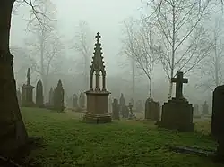 Kirkburton Church is dedicated to All Hallows. It was built in 1190, and is a Grade I listed building. Most of the structure is 13th century although parts have been rebuilt. The tower was added in the 15th century. Inside the church is a late-medieval nave ceiling, large wooden pulpit, stone font and Elizabethan and Jacobean pews. A small window in the chancel may have opened from the cell of a hermit. A restored 10th-century stone crucifix can be found inside, supporting the belief that another church or Christian settlement may have existed on this site. The church has undergone extensive restoration. The churchyard has also undergone landscaping and is a designated wildlife sanctuary.[7]