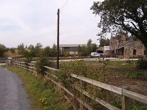 After formal closure to passenger on 1 February 1954, the line was still on occasions used for weekend excursions and to transport pupils to and from local boarding schools. Goods traffic continued until 1 October 1964. The line was maintained as a possible relief route until April 1967 when the tracks were lifted.[3] The station had a goods shed, weighing machine and cattle pens.[4] The station building survives as a private dwelling.