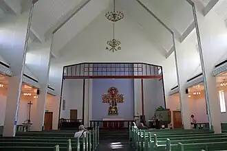 Kirkenes Church (Norwegian: Kirkenes kirke) is a parish church of the Church of Norway in Sør-Varanger Municipality in Finnmark county, Norway. It is located in the town of Kirkenes, just off the European route E06 highway. It is one of the churches for the Sør-Varanger parish which is part of the Varanger prosti (deanery) in the Diocese of Nord-Hålogaland. The white, concrete church was built in a long church style in 1959 by the architect Sofus Hougen. The church seats about 275 people.[1][2]