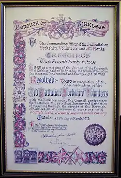 33. ^ Hirst, Andrew (16 October 2008). "Special Huddersfield parade to honour Yorkshire Regiment". Huddersfield Examiner. Retrieved 14 February 2009.