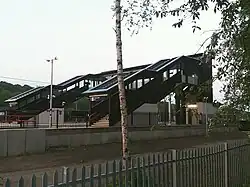 The station has two platforms, with a footbridge and lifts linking them.[7] A bus stop, 127 car parking spaces and secure cycle storage were also constructed along with the station.[8] Ticket vending machines are available and there are digital information screens and a P.A. system provided for train running information provision.