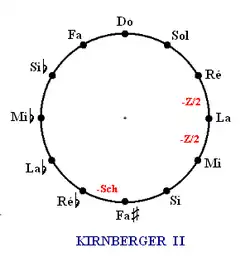 The Kirnberger temperaments are three irregular temperaments developed in the second half of the 18th century by Johann Kirnberger. Kirnberger was a student of Johann Sebastian Bach who greatly admired his teacher; he was one of Bach's principal proponents.[1]