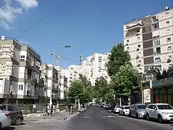 Kiryat Itri was planned for 250 families.[1][6] Three high-rise apartment buildings were erected on the south side of the street, and five low-rise apartment buildings on the north side. The flats were small by American standards.[5] A supermarket and postal agency[7] occupy the ground floor of 14 Sorotzkin, the westernmost building. The main street, Rechov Sorotzkin, is named after Rabbi Zalman Sorotzkin.[8]