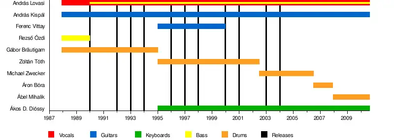 - András Lovasi – vocals, lyrics, bass, composer (1987–2010, 2022–present)