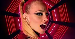 The music video features Lott donning a number of different outfits. It opens with Lott sporting a high ponytail, a black top and dark eye make-up. In the following scene, Lott is seen dancing in a tight leotard with leggings and her hair styled poker straight. In another scene, Lott wears a long blonde wig with a blunt fringe and a flowing white dress. She is also seen dancing against a futuristic background, surrounded by CGI dancers that resemble robots.[9] In another scene, Lott kisses one of the robots, the robot then forms itself into an attractive male dancer.[12]